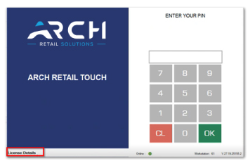 When you run Arch Retail, notice the new License Details area on the bottom left of the startup/login screen.