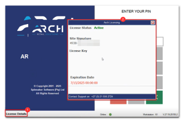 - You’ll receive advance notice when your license is approaching expiry (visible on the bottom left of the Arch Retail startup screen).