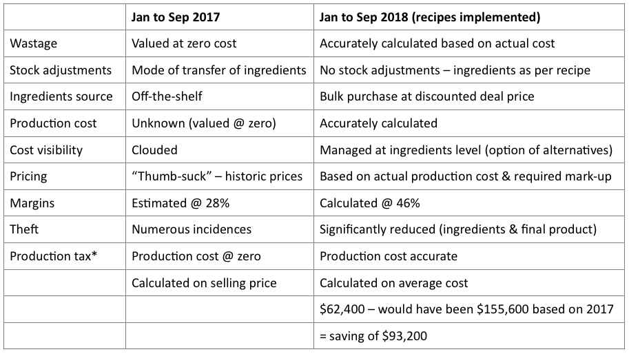 From the case study it is evident that implementation of Recipes in the service departments of this has Arch User reduced the unknowns in production cost management significantly, tightened controls, thus reducing wastage and pilferage and overall, increased profitability.